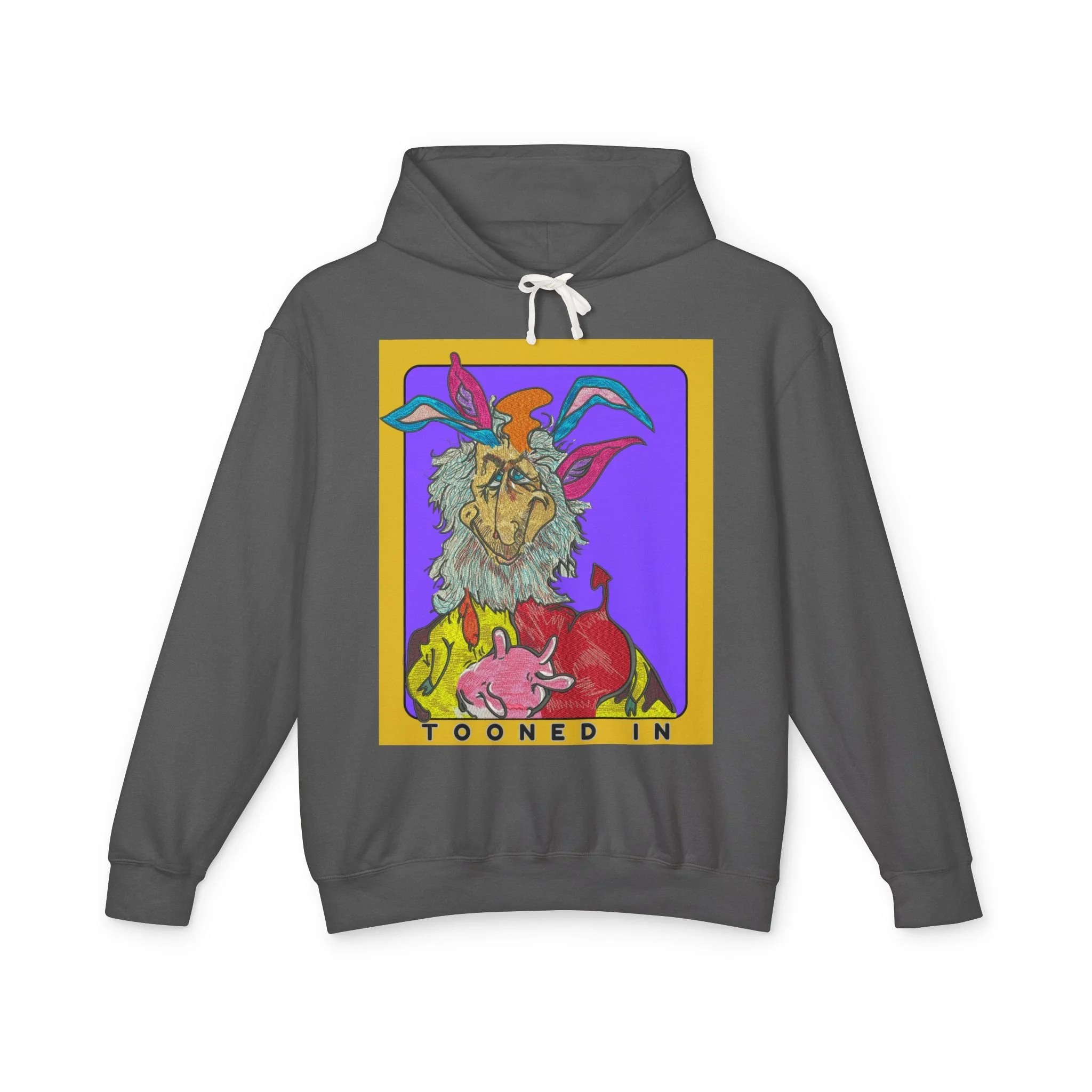 This design is available below on a T-shirt, Hoodie, Tank Top, or Mug. Two different color presentations, with additional variations captioned “TOONED IN”.