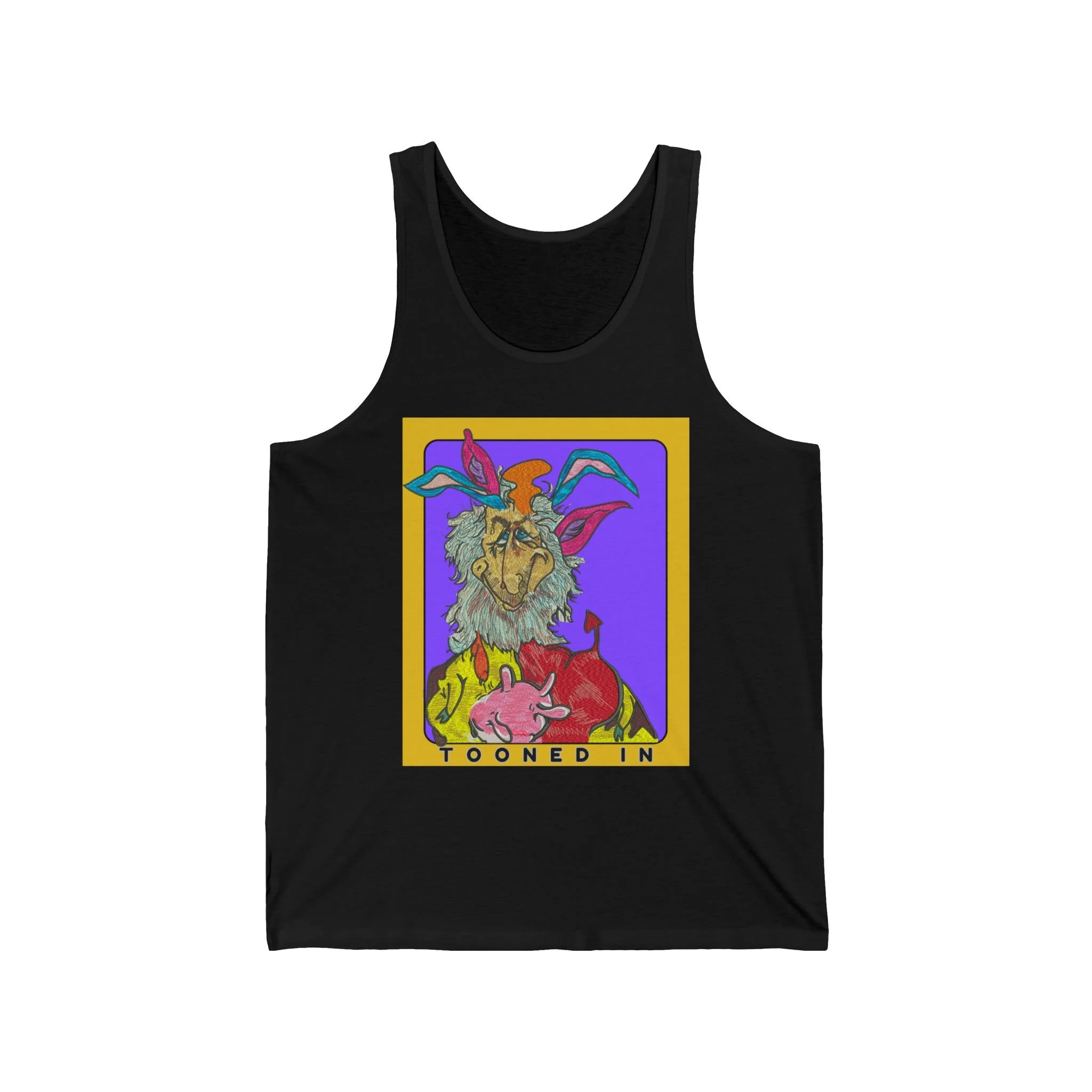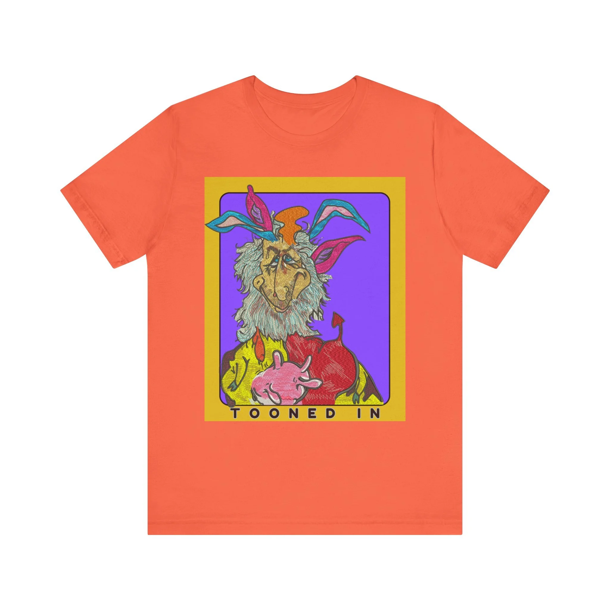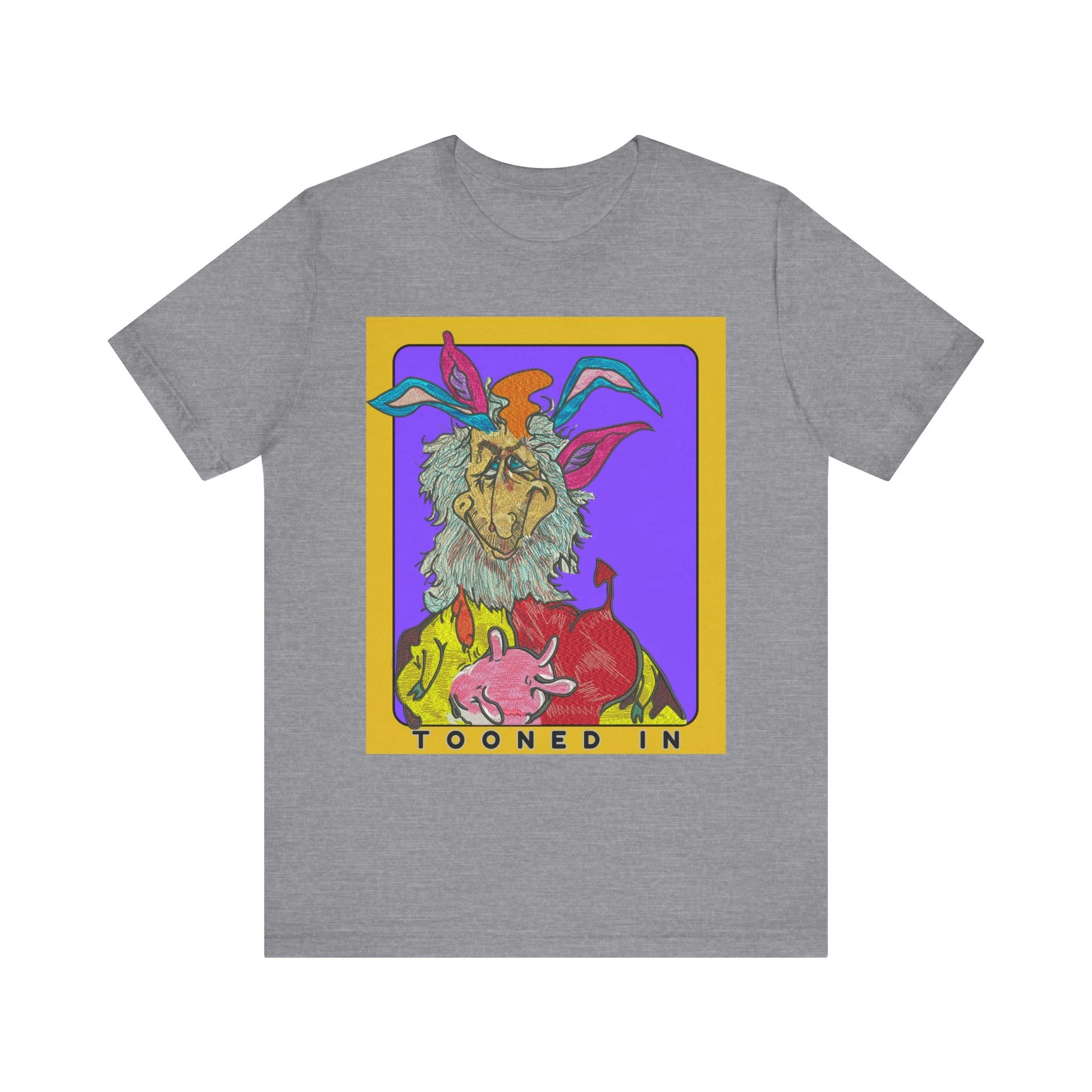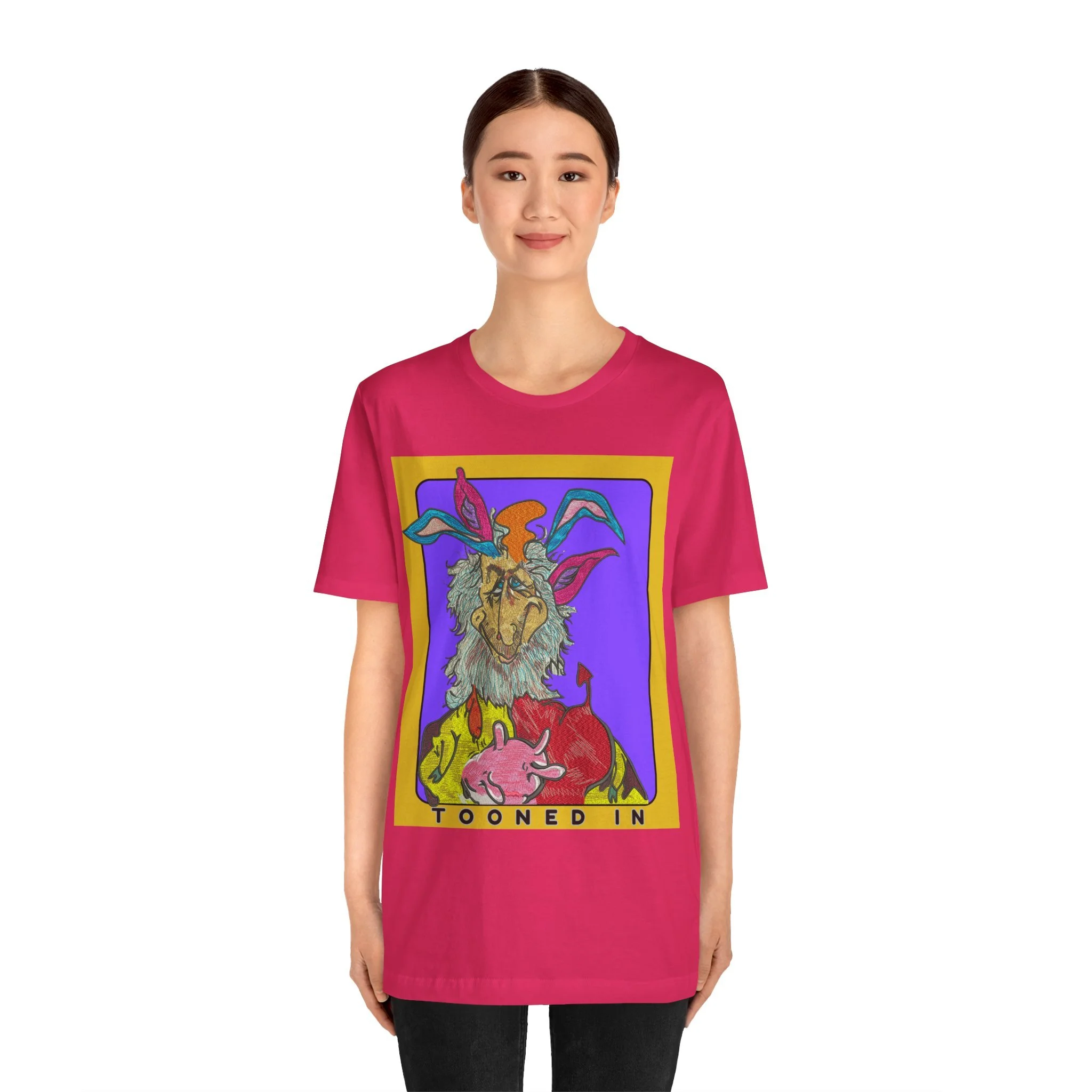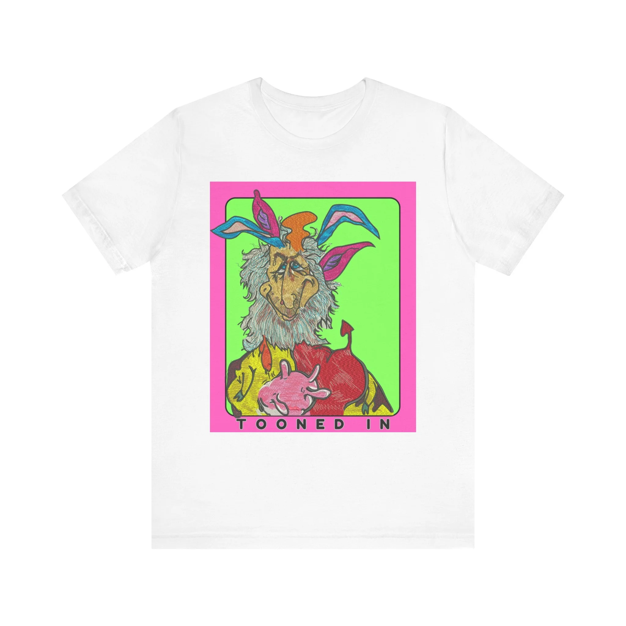 This design is available below on a T-shirt, Hoodie, Tank Top, or Mug. Two different color presentations, with additional variations captioned “TOONED IN”.