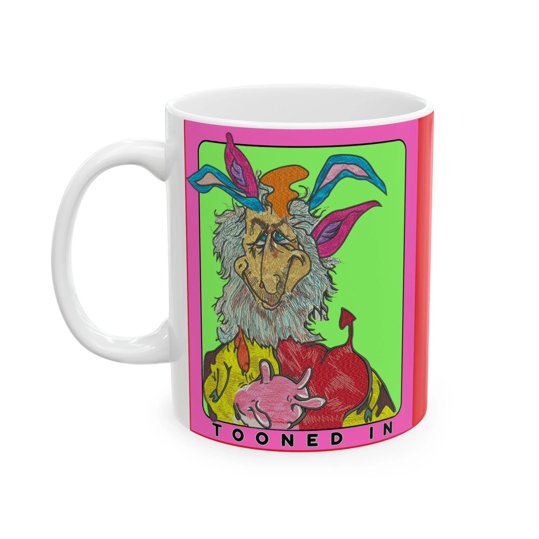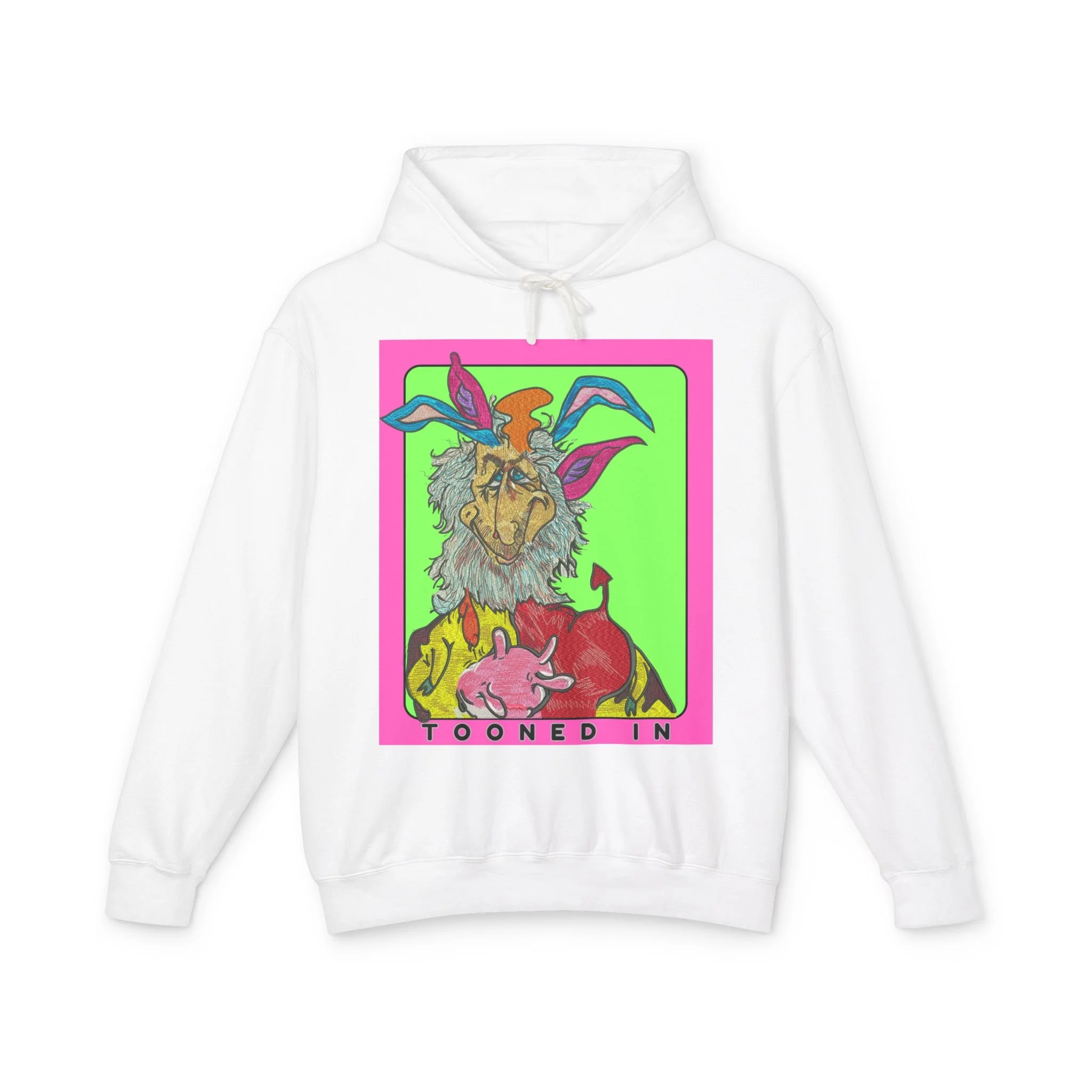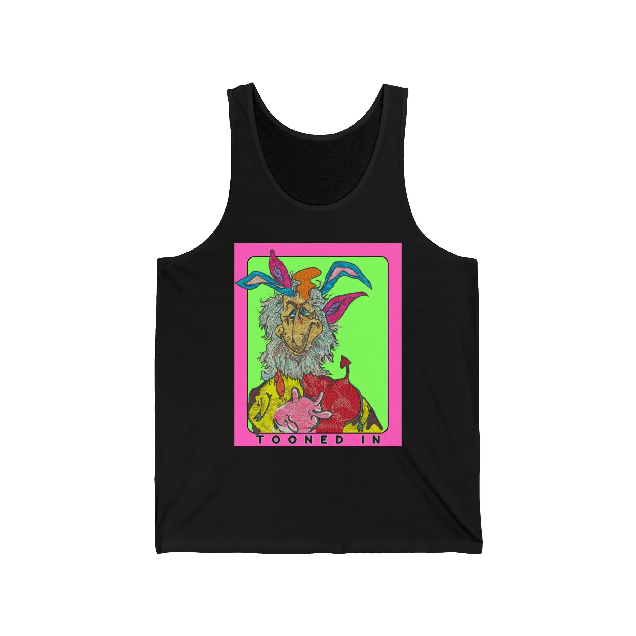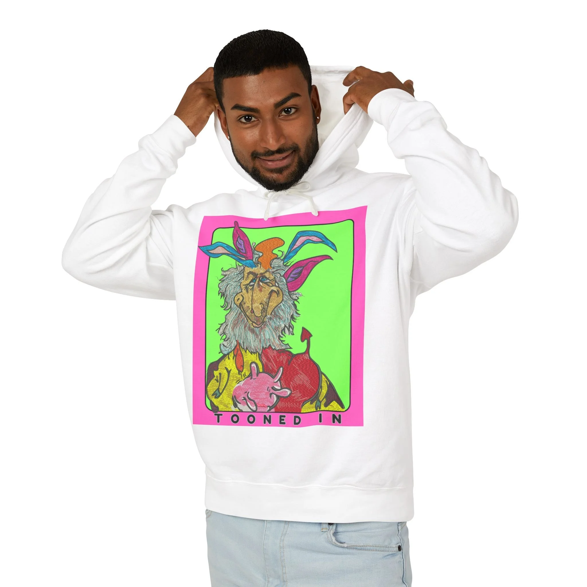 This design is available below on a T-shirt, Hoodie, Tank Top, or Mug. Two different color presentations, with additional variations captioned “TOONED IN”.