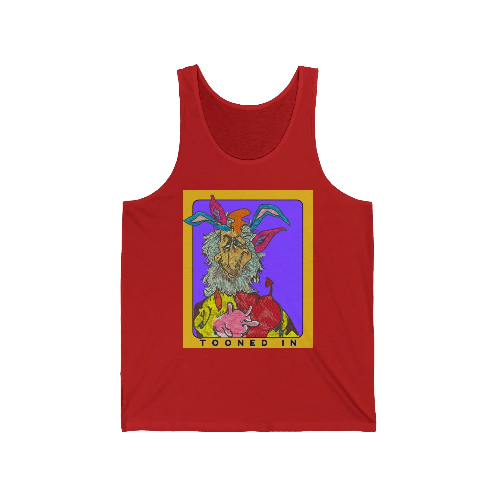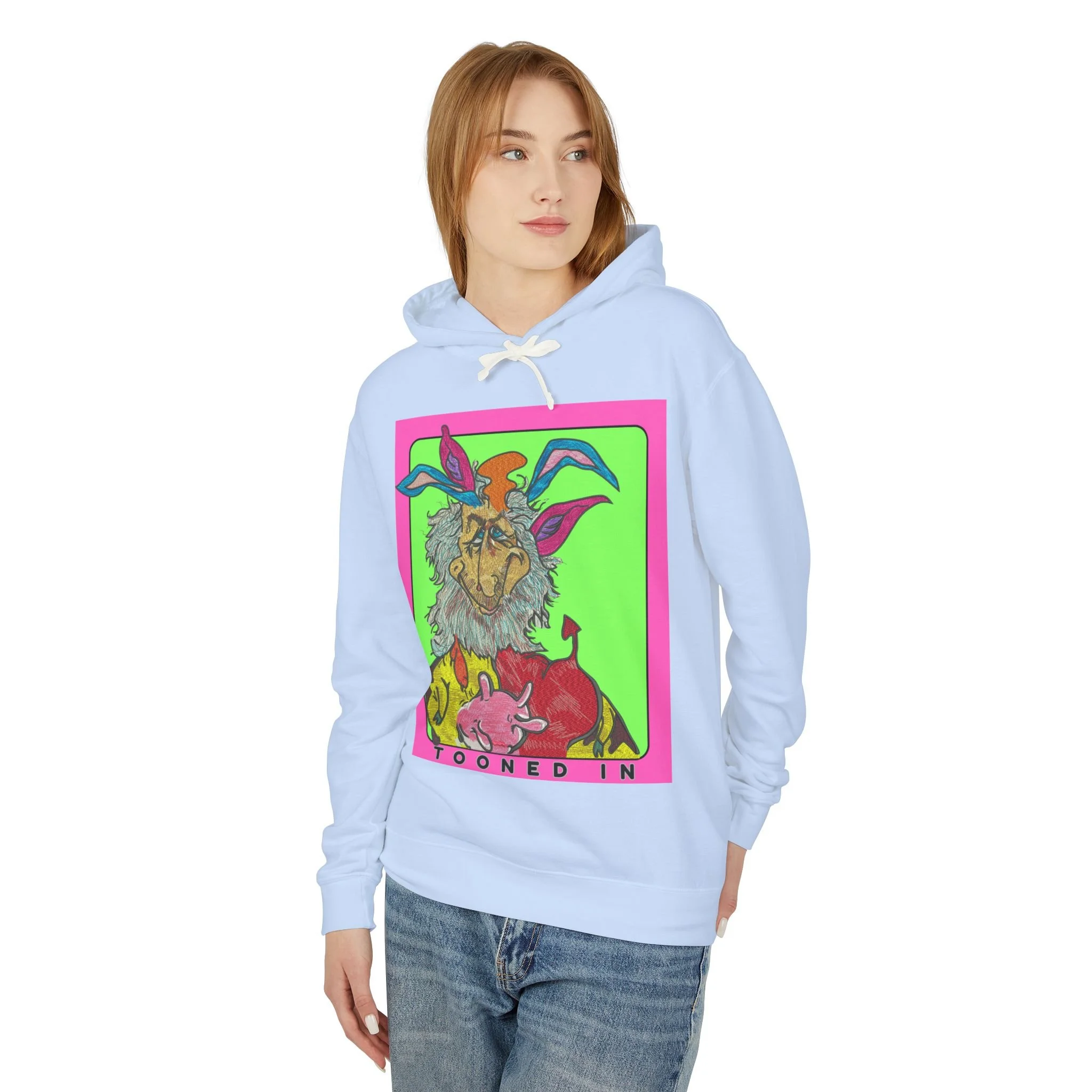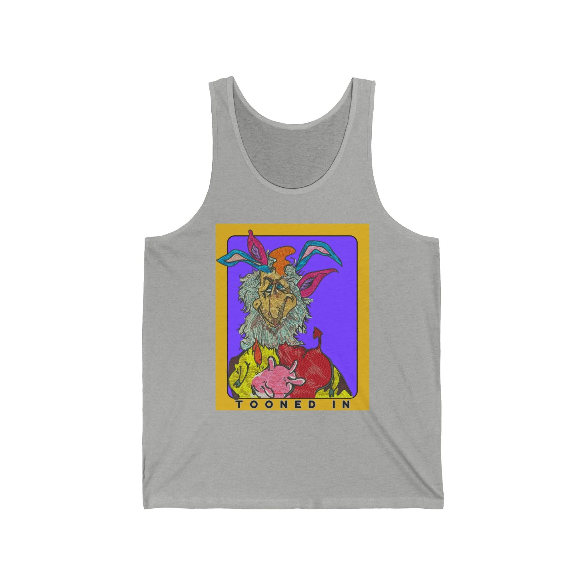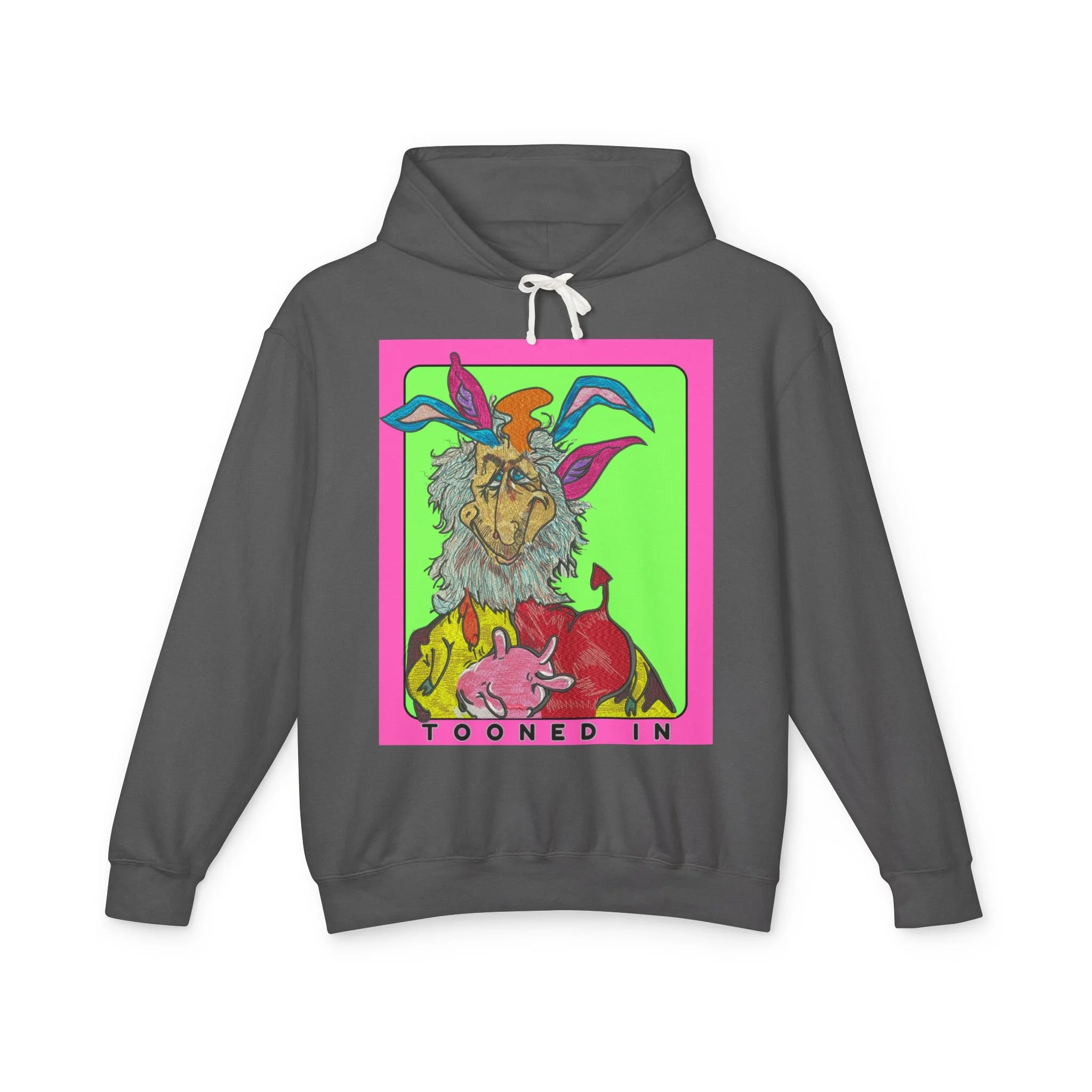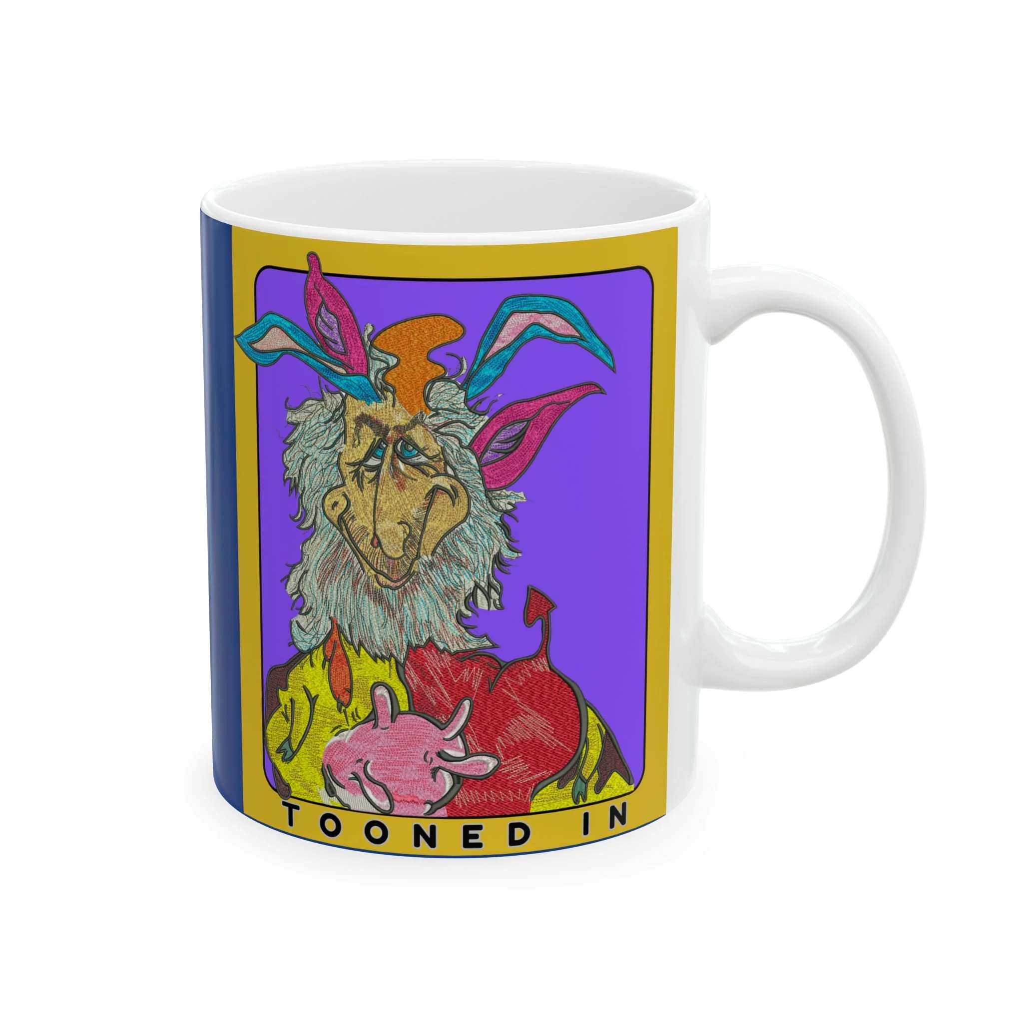 This design is available below on a T-shirt, Hoodie, Tank Top, or Mug. Two different color presentations, with additional variations captioned “TOONED IN”.